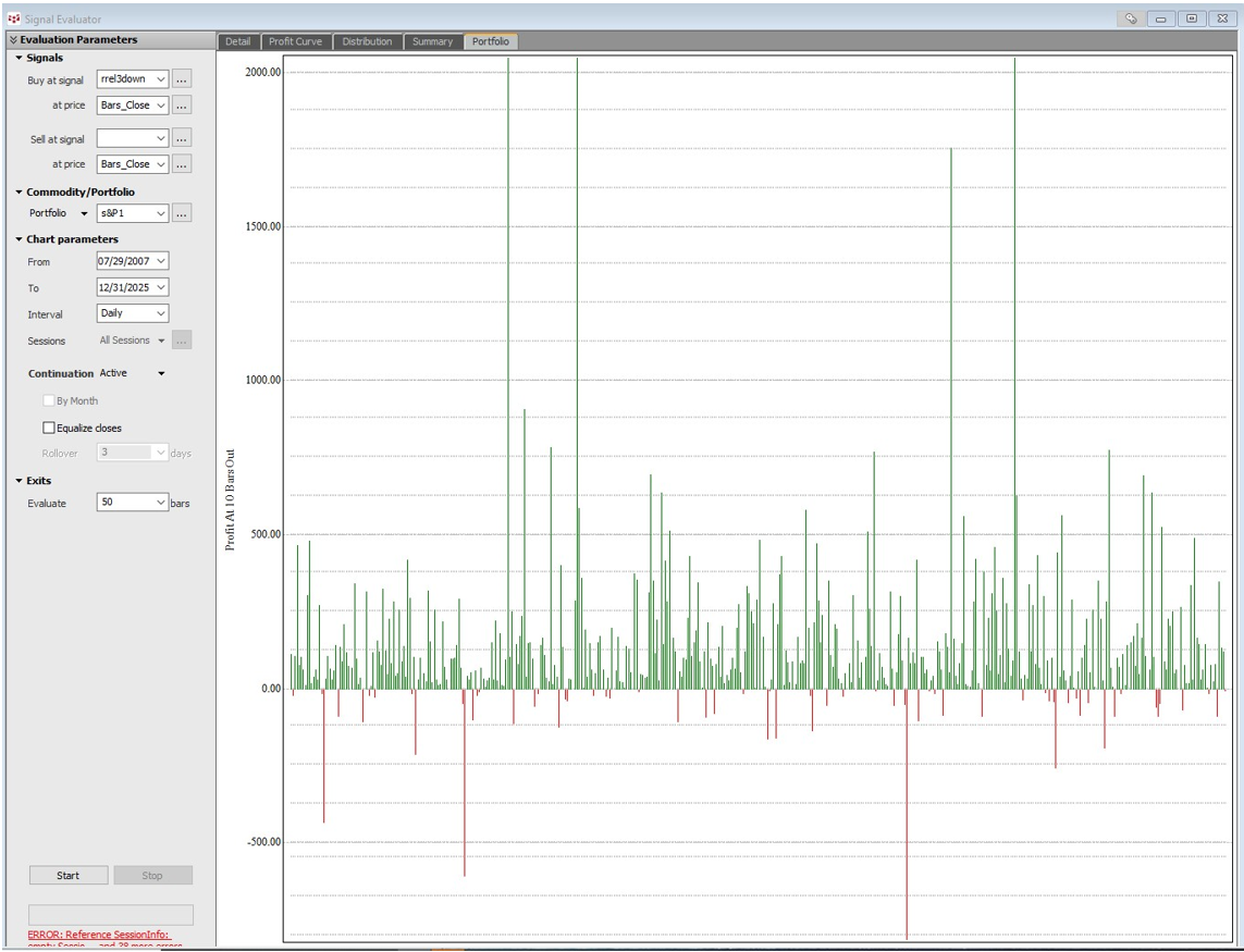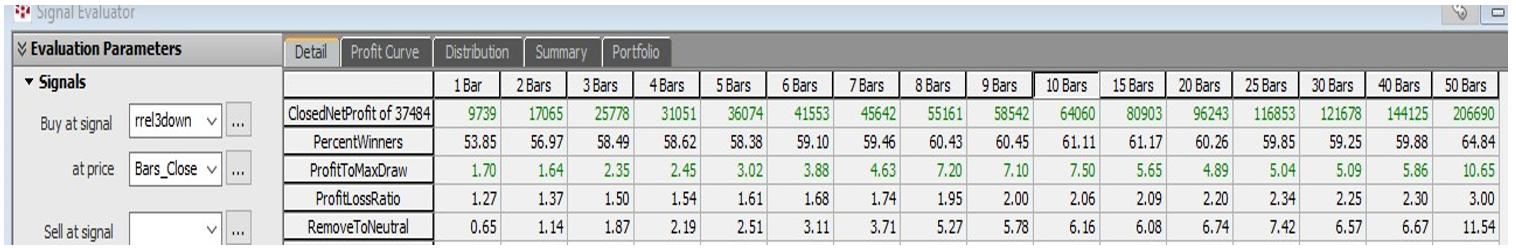 Below is the results of a scan dating back to 2007 on the S&P 500 stocks when price hits the 3rd Monthly deviation down. Note how the accuracy through time is around 60%. On the Portfolio positives far out way negatives.