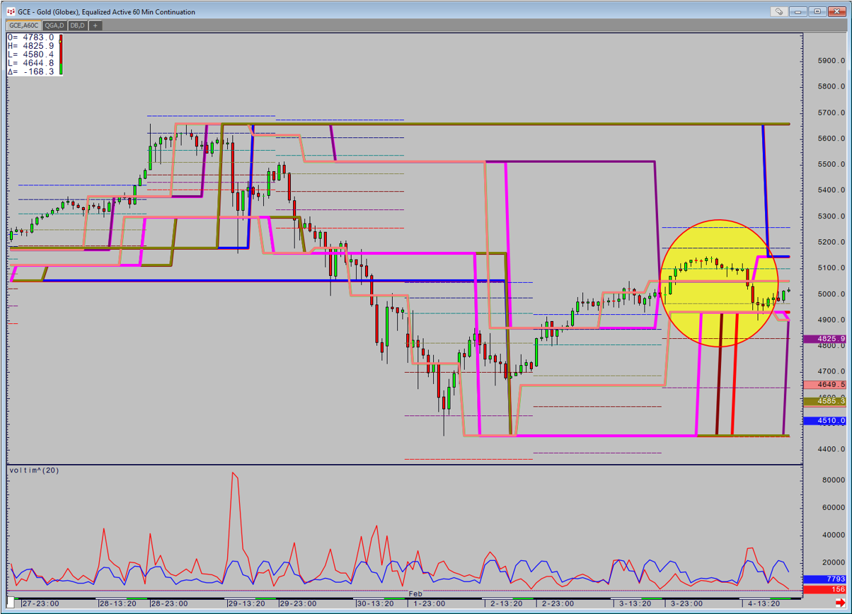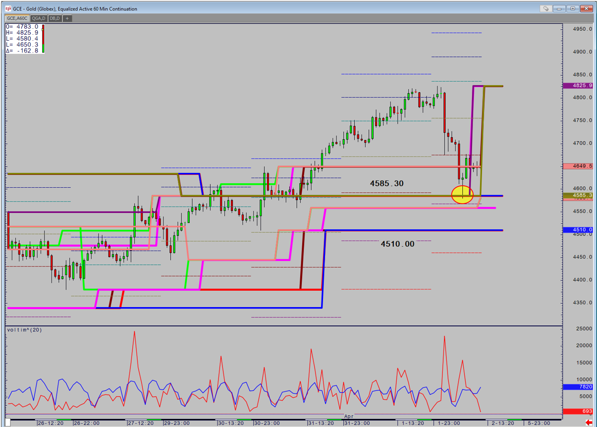 It also coincided with the Peak Range and Volume 360- and 720-min lines showing a major support a couple of bucks higher at 4585.30, thus creating a powerful zone.
