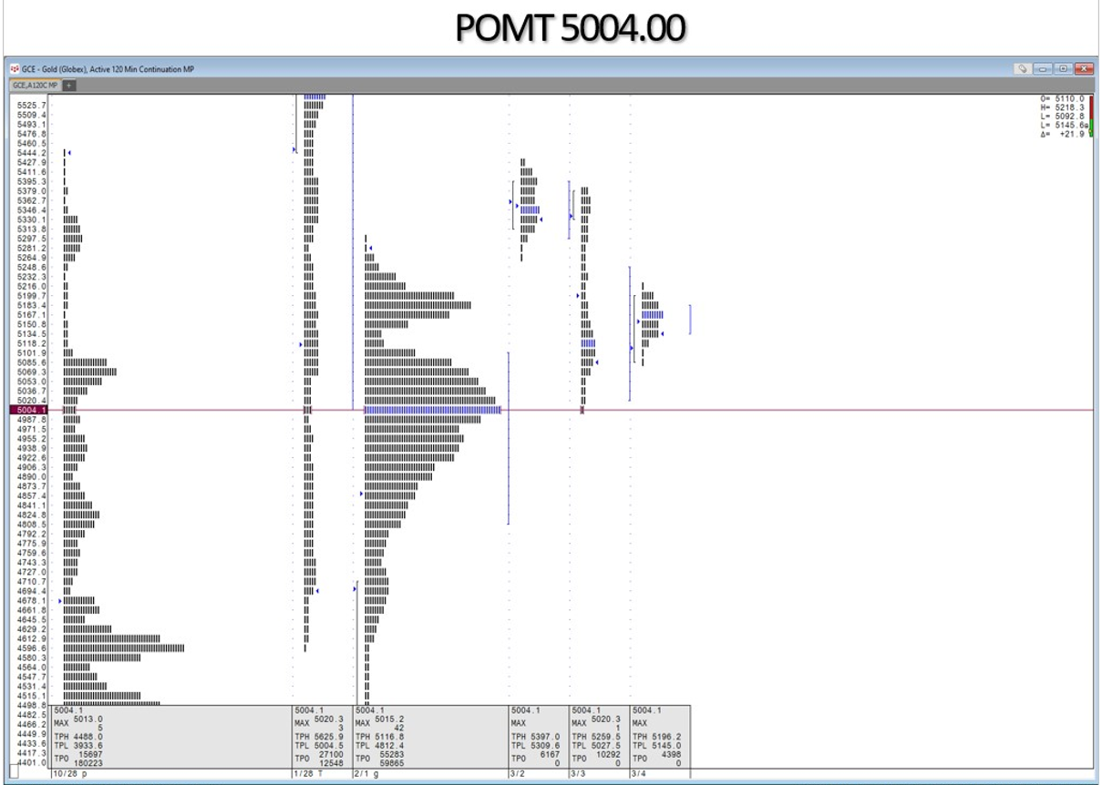The Mid Eighties saw a sudden quantum leap. Up to that point the Pit Traders simply had the daily Pivot values as a reference, and they worked very well as it was all anyone had. The new kid on the block was Pete Steidlmeyers Market Profile. Once again, I was drawing on Graph paper and trying make sense of it. The process of drawing your own graphs is illuminating as the process engages you more and provides insights beyond visualisation. Not soon into the process I spotted that If I merged the last 5 days into one picture, it was very different and provided new techniques and theories. Why 5 Days? Because short term traders can't remember more than 5 days back.