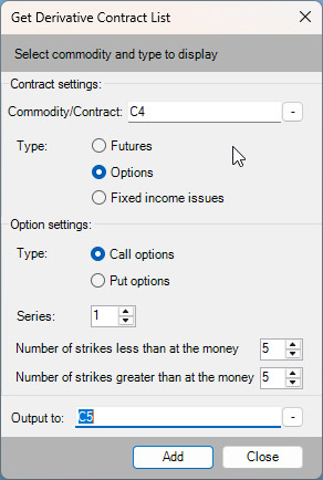 The CQG RTD Toolkit is installed with CQG IC and QTrader. To create a list of Options Symbols click Derivative List.