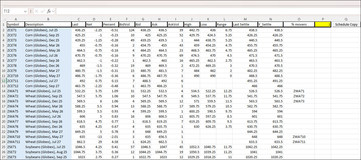 Sheet1 of the spreadsheets can be modified to pull in market data using RTD formulas based on the user's requirements. The downloadable sample comes with these symbols and market data.