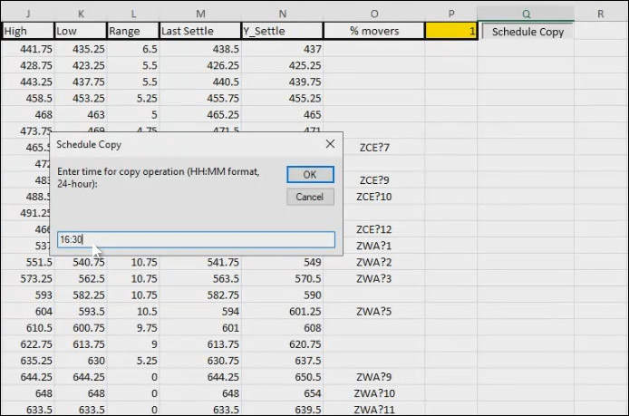 With the advent of nearly 24-hour electronic trading, one technical issue is market data servers require to be cleared of today's trading activity before the opening of the evening sessions. This can be inconvenient if today's trading activity needs to be accessible after this period when today's activity is purged. CQG's Jim Stavros Manager/Product Specialist has published a macro enabled Excel spreadsheet that will "copy and paste values" based on a scheduled time.