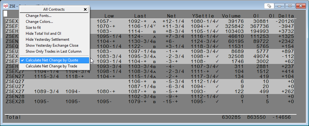 The downloadable sample has two tabs: Last Quote and Last Trade. This is the same as the All Contracts display. The Last Quote uses Net Last Quote and Last Trade uses Net Last Trade.