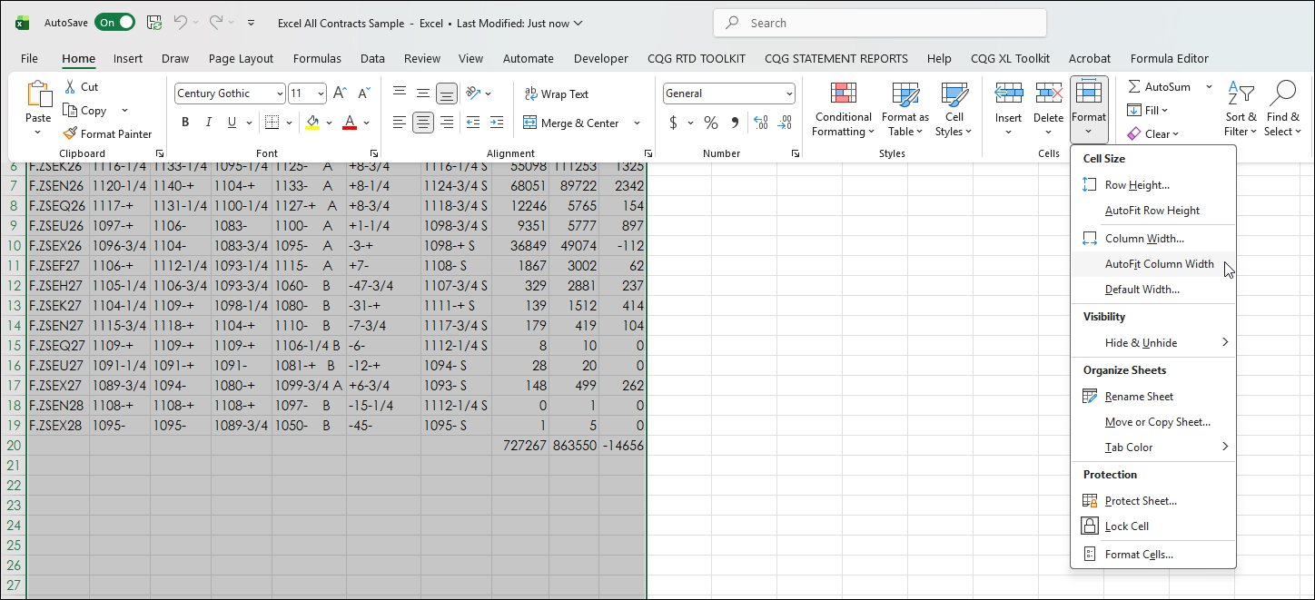 A popular quote display for following a group of contracts in a particular commodity is the CQG All Contracts display. This post details the steps to replicating this display in Excel.