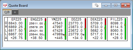 The CQG Quote Board is a classic quote display providing the open, high, low, last, and net change from the prior close.