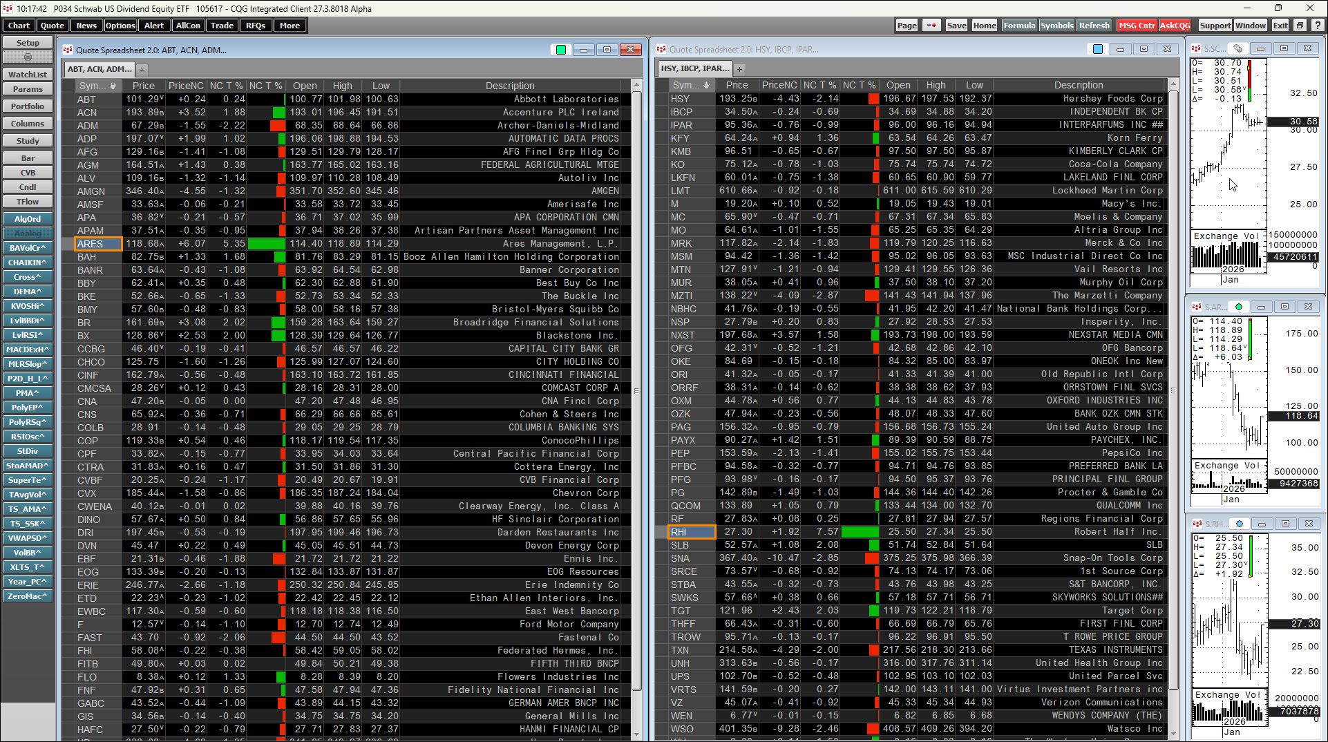 This post details a CQG PAC that is a CQG page that can be downloaded and installed to track the day's performance of the holdings of the Schwab U.S. Dividend Equity ETF (Symbol: SCHD).