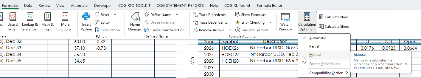 Requirements: CQG Integrated Client or QTrader, exchange enablements for the CME Group and ICE Futures Europe -- Commodities, and Excel 365 (locally installed, not in the Cloud) or more recent.