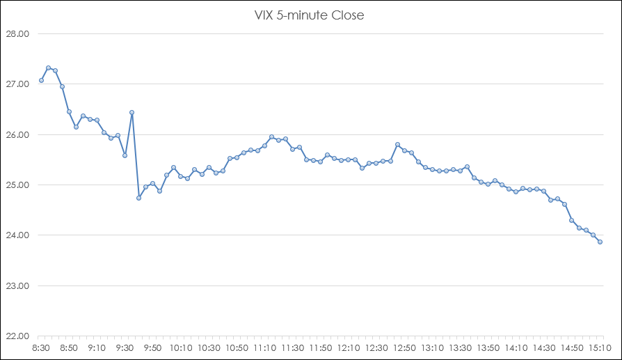 This provides a relative view of the current VIX reading compared to the high-low range of the various lookback periods.